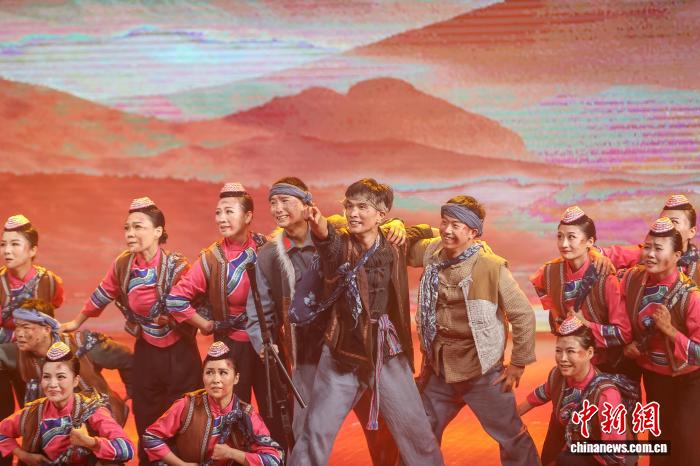 9月24日,江西赣州于皆县,北昌市代替队正在演出跳舞《走背中兴》。中新社记者 刘力鑫 摄