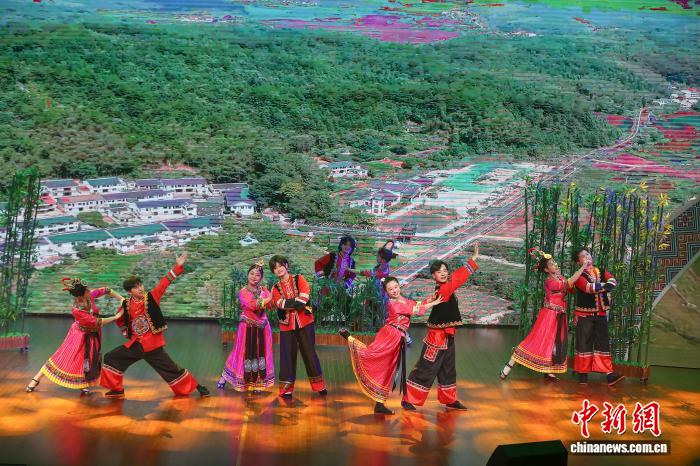 9月24日,江西赣州于皆县,赣州市代替队正在演出跳舞《幸运瑶寨迎客去》。中新社记者 刘力鑫 摄