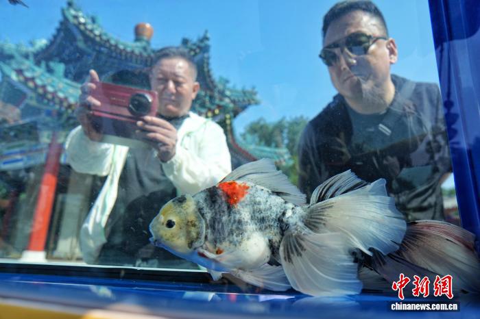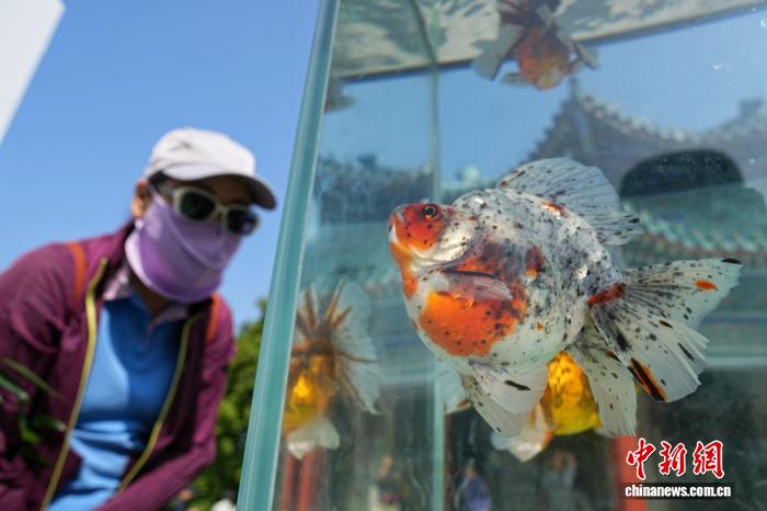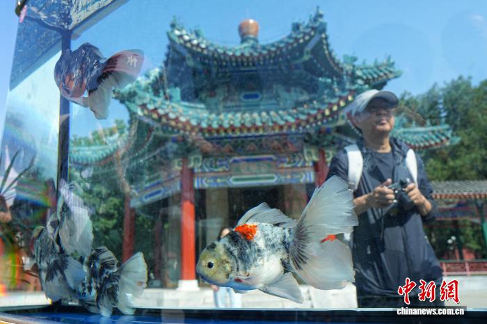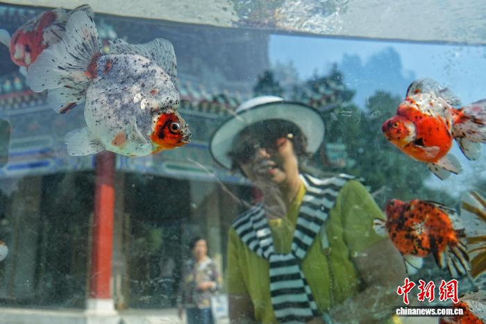 图为搭客鉴赏金鱼。中新社记者 杨华峰 摄