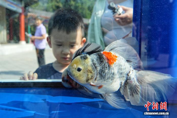 图为小同伙欣赏金鱼。中新社记者 杨华峰 摄